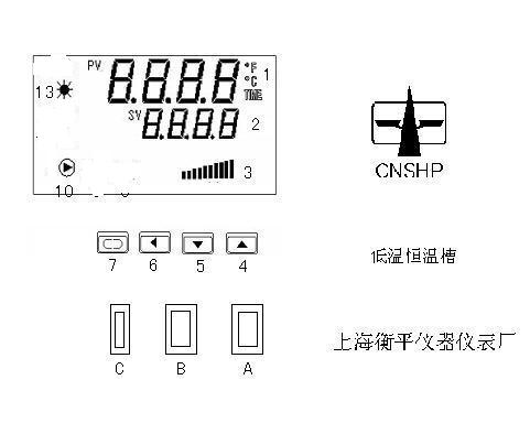1.PV显示器:显示测量温度或根据仪表状态显示各类提示符;